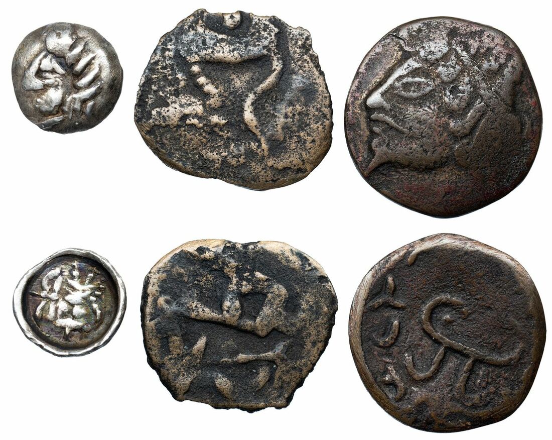 Eastern Sogdiana (Dahae) (2nd – 3rd century), scyphate Obol, Head of 'Tavr'aka the Dahaean' left / Stylized archer standing right (CCA ES 4; Zeimal', Ancient Coins, pl. 32, 53; MAC 349-50 (The Dahae of the East Caspian Lowlands)), toned very fine; Central Asia, early Chach (3rd-6th century), Æ Unit, 2.58g, diademed bust left, rev. Tamgha with Sogdian legend around (see S&K 10 for type),about fine/ fine; Later Chach (c.7th century) AE Unit, 1.43g, type 9, lion to right, rev. tamgha in shape of a katar, Sogdian legend around (see Zeno # 288949 for type), fair, an interesting Central Asian group (3)