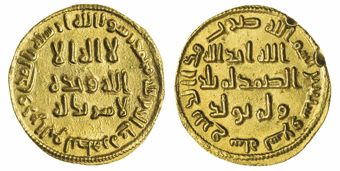 (x) Umayyad, time of `Abd al-Malik (685-705), gold Dinar, 4.28g, mintless type (Damascus), AH 79 (Album 125), a couple of nicks on edge from removal of old mount, otherwise extremely fine