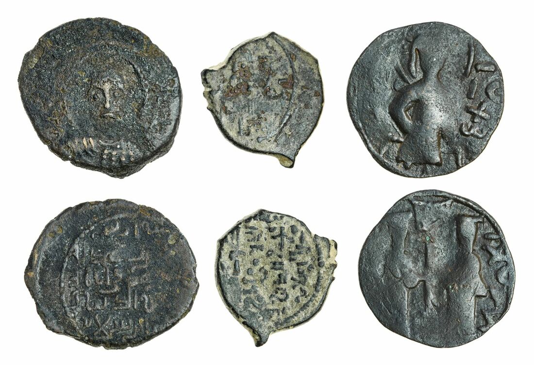 Artuqids of Hisn Kayfa and Amid, Fakhr al-Din Qara Arslan (1144-1174), AE dirhams (2), 6.42; 5.49g, without mint or date bust of Christ Pantocrator, rev. ruler's names and titles (S & S Type 1; Album 1820.1), one about fine, the second on an irregular flan, fine, both variants of a rare type; Zangids of Syria, Nur al-Din Mahmud (1146-1173), AE Dirham or cast imitation, 3.55g, two Byzantine-style figures standing facing, holding a labarum, rev. Christ Pantokrator standing facing, traces of legend both sides (Whelan Type II, 202-5; S&S Type 73; Album 1850; ICV 1265), fine (3)