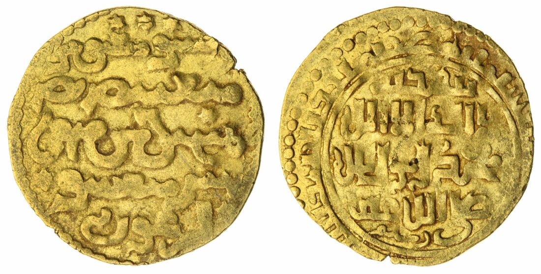 Ilkhan, Arghun (1284-1291), gold Dinar, 3.93g, mint and date off flan, but in style of Tabriz, Uighur legend on reverse (Album 2144), on large flan, tiny nick on edge, fine, scarce