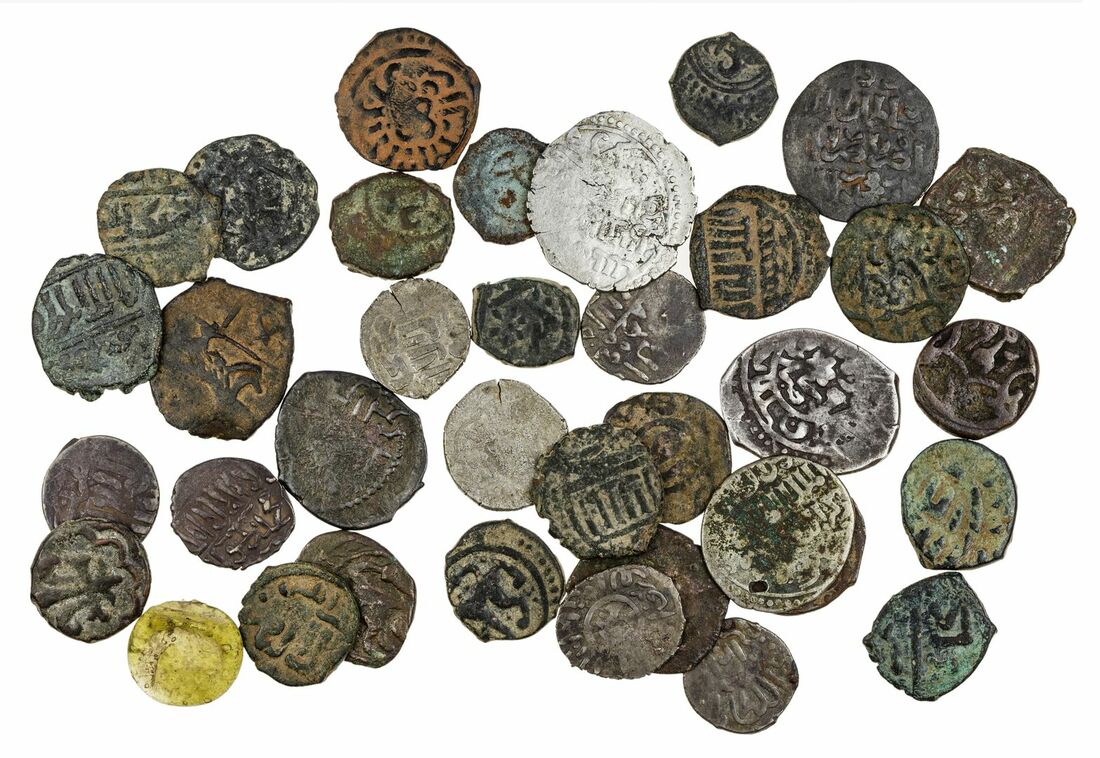 Mamluk Egypt, Silver and Bronze issues (35) (c. AH658-865), of various rulers and mints, noted issues of Al Zahir Baybars I, silver Dirhams (3); AE Fals various rulers noted al Sha'ban II, including (2) with fleur de lis others with lion on rev.; also Khushqadam, silver Dirham (Wilkes 1057), other silver not described; AE of Hasan (1347-1361) (2); Ali II (1376-1382) (2) and several other rulers; silver Dirhams of Aynal (1453-1461) (2); and Fatimid glass jeton, all in envelopes partially described with details of provenance, poor to very fine, several scarce types an interesting selection (36)