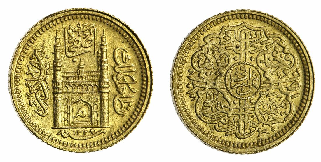 (g) Princely States, Hyderabad, Mir Mahbub 'Ali Khan II (1869-1911), milled gold Eighth-Ashrafi, 1.39g, Haidarabad, AH1329 / 44, Char Minar with min within arch (KM Y# 41.2), good extremely fine, scarce