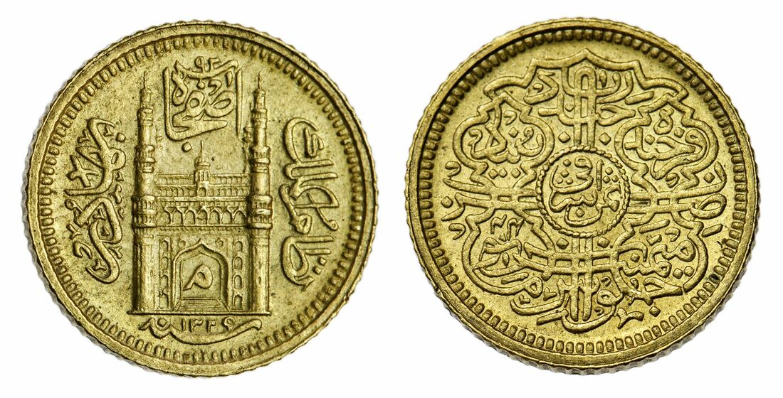 (g) Princely States, Hyderabad, Mir Mahbub 'Ali Khan II (1869-1911), milled gold Eighth-Ashrafi, 1.39g, Haidarabad, AH1329 / 44, Char Minar with min within arch (KM Y# 41.2), about uncirculated, scarce
