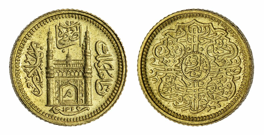 (g) Princely States, Hyderabad, Mir Mahbub 'Ali Khan II (1869-1911), milled gold Eighth-Ashrafi, 1.40g, Haidarabad, AH1329 / 44, Char Minar with min within arch (KM Y# 41.2), about uncirculated, scarce