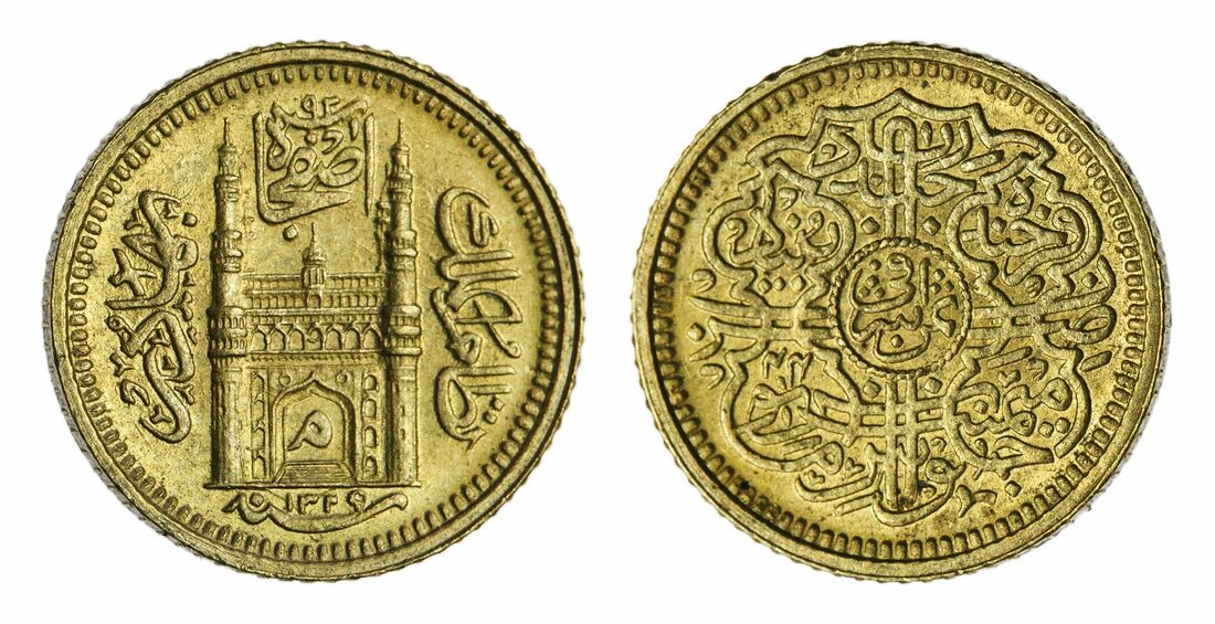 (g) Princely States, Hyderabad, Mir Mahbub 'Ali Khan II (1869-1911), milled gold Eighth-Ashrafi, 1.39g, Haidarabad, AH1329 / 44, Char Minar with min within arch (KM Y# 41.2), about uncirculated, scarce