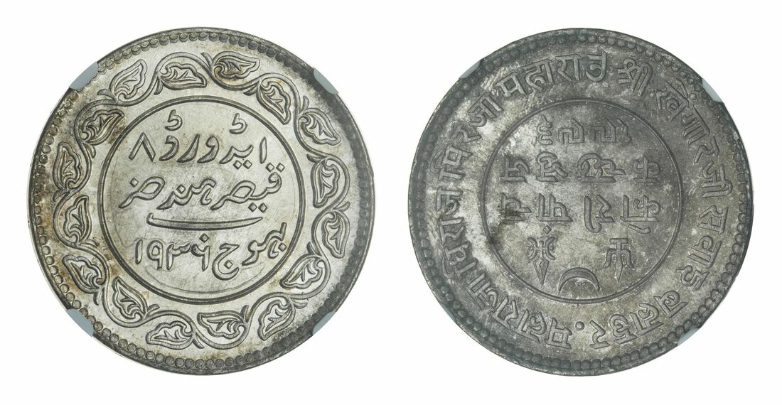 NGC MS65 | Princely States, Kutch, in the name of Edward VIII (1902-1910), 5-Kori, 1936 / VS1993 (KM Y# 67), with a most handsome cartwheel lustre and toned, uncirculated, one of very few coin types issued in the name of Edward VIII, in NGC holder, graded MS65 (Cert. #6766255-039)