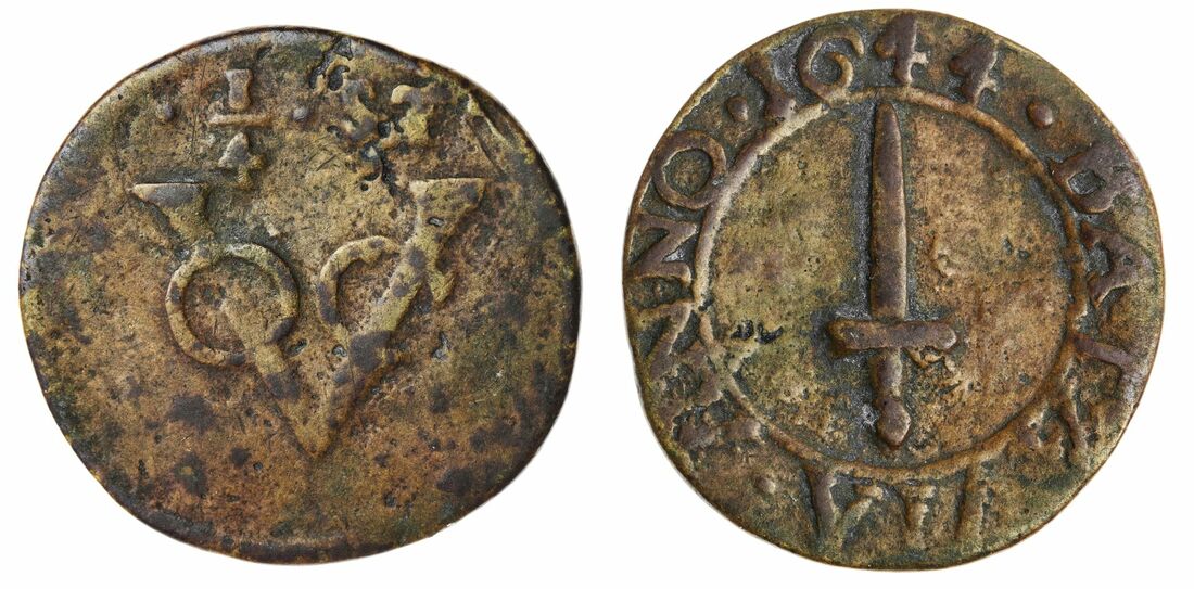 This very short-lived emergency coinage was authorised by a Placard of 19 August 1644. It gave 'the Chinaman called CONJOK' the right to produce a certain number of Half and Quarter Stivers. Scholten tells us that this was to redress the shortage of small change in Banda, Malacca and Ceylon as well as Batavia itself. A prohibition was issued by the Dutch East India Company later that year, so it appears these coins were only struck for a few months. It is not known how many were struck, but the Quarter-Stivers are certainly far rarer than the Half-Stivers today.