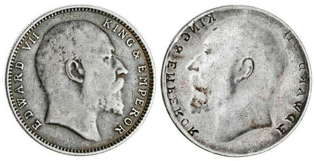 (x) NGC MINT ERROR VF30 | India, Edward VII (1901-1910), Mint Error Brockage Rupee, circa 1903-10, mirror brockage on reverse, milled edge, 12h, 11.54g (cf. KM 508), lightly contact marked and rubbed, otherwise a pleasing curiosity and ever popular, very fine and scarce, in NGC holder, graded MINT ERROR VF30 (Cert. #6768662-001)