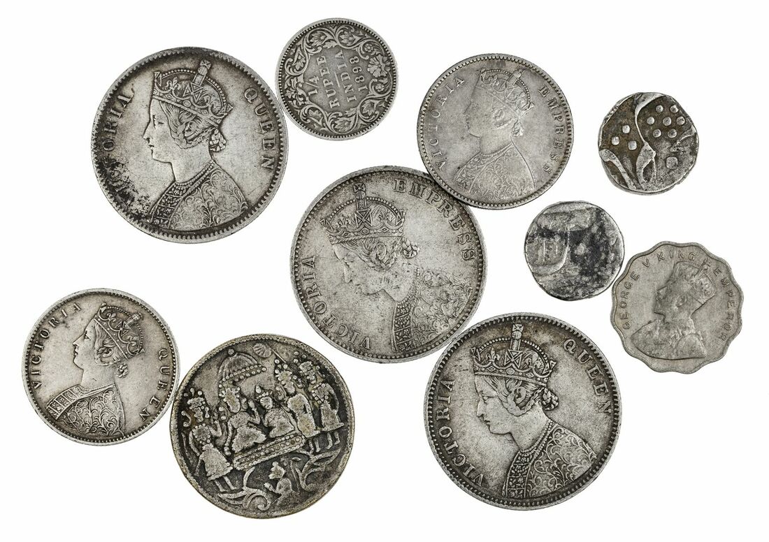 India, Miscellaneous (18th-20th century), Rupees (3), 1862 (2), 1877 B, Half-Rupees (2), 1862, 1899 B, Quarter-Rupee, 1898 B, 1-Anna, 1936, Dump Half-Rupees (2) of Bombay Presidency and Baroda, Khande Rao, together with a Ramatanka Token, the dump coins fine, milled issues generally very fine or better (10)