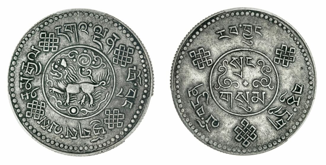 PCGS XF45 | Tibetan Government, Anonymous, First Issue, 3-Srang, 16-7 (1933), Trabshi mint, snow lion facing left, rev. denomination in two lines, flanked by ornaments and a small cross, milled edge, 12h (cf. Rhodes 2013, lot 369; LM 659; Y 25), touch of softness to the higher central devices, yet with a light tone, good very fine, in NGC holder, graded XF45 (Cert. #4825100)