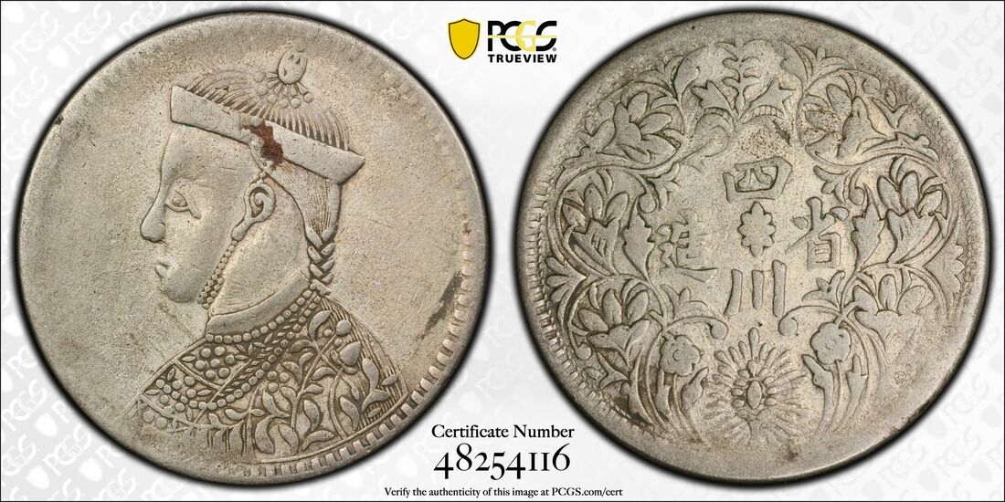 China, issued for Tibet, Szechuan Rupee, (1911-1933), collar type, milled edge, 11h (LM 359), cleaned and smoothed, otherwise about very fine, in PCGS holder, graded PCGS Genuine ~ Cleaned VF DETAIL (Cert. #48254116)