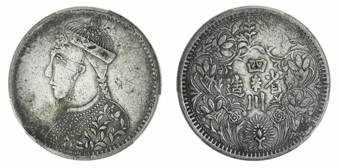 China, Issued for Tibet, Szechuan Rupee, (1939-1942), collar type, milled edge, 12h (LM-359B), scratched and soft in parts, better to the bust, about very fine, in PCGS holder, graded Genuine ~ Scratch VF DETAIL (Cert. #48254114)