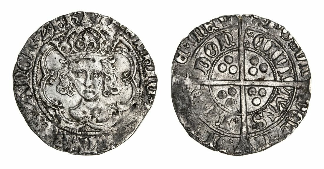 Henry VII (1485-1509), Facing Bust Issue, Groat, Type IIIc, 1495-1598, London, crowned facing bust, one jewelled, one plain arch rev. CIVITAS LONDON, long cross and trio of pellets in angles, 11h, 2.99g, m.m pansy (North 1705c; Spink 2199), the obverse double struck and with some softness to the legends, otherwise a most pleasing portrait, good very fine