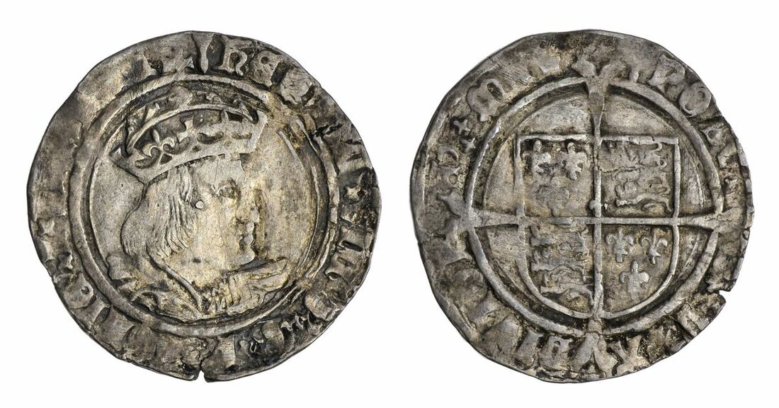 Henry VIII (1509-1547), Second Coinage, Groat, 1526-1544, Tower, crowned bust right, rev. saltire stops, square-topped shield over long cross fourchée, 2h, 2.63g, m.m arrow (Laker bust D; North 1797; Spink 2337E), soft to parts of the legends, small edge crack at 6 o'clock, with a pleasing lustre and speckled toning, bolder fine