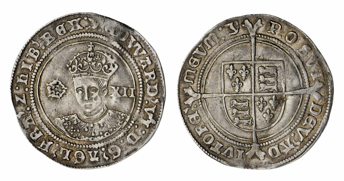 Edward VI (1547-1553), Third Period, Fine Silver Issue, Shilling, 1551, Tower, (m.m.) EDWARD '. VI : D '. G '. AGL '. FRA '. Z : hIB '. REX : crowned bust facing, Tudor rose to left, denomination to right, rev. POSVI DEV .' A DIVTOR E .' MEV '. square-topped shield over long cross fourchée, 6.08g, 5h, m.m. Y (North 1937; Spink 2482), '1547' lightly graffitied above the shield, softness in parts, otherwise on a pleasing round flan and a mostly pleasing portrait, bolder very fine