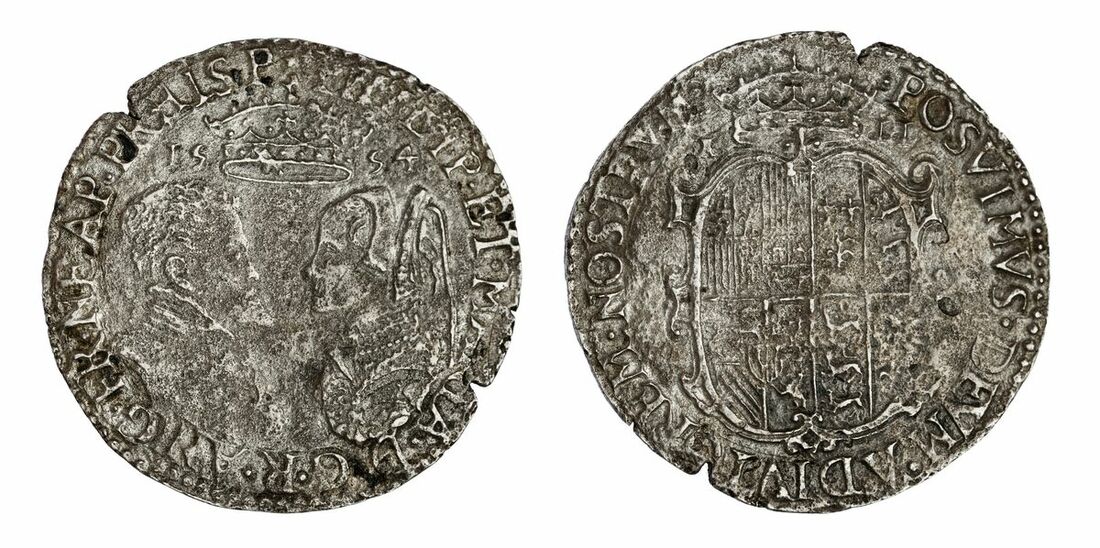 Philip and Mary (1554-1558), Shilling, 1554, Tower, full titles, busts vis-a-vis, crown and date above, rev. crowned oval shield, dividing X-II, 3.84g, 1h, no m.m. (North 1967; S.2500), porous and ragged in parts, nevertheless boldly struck for type, very fine