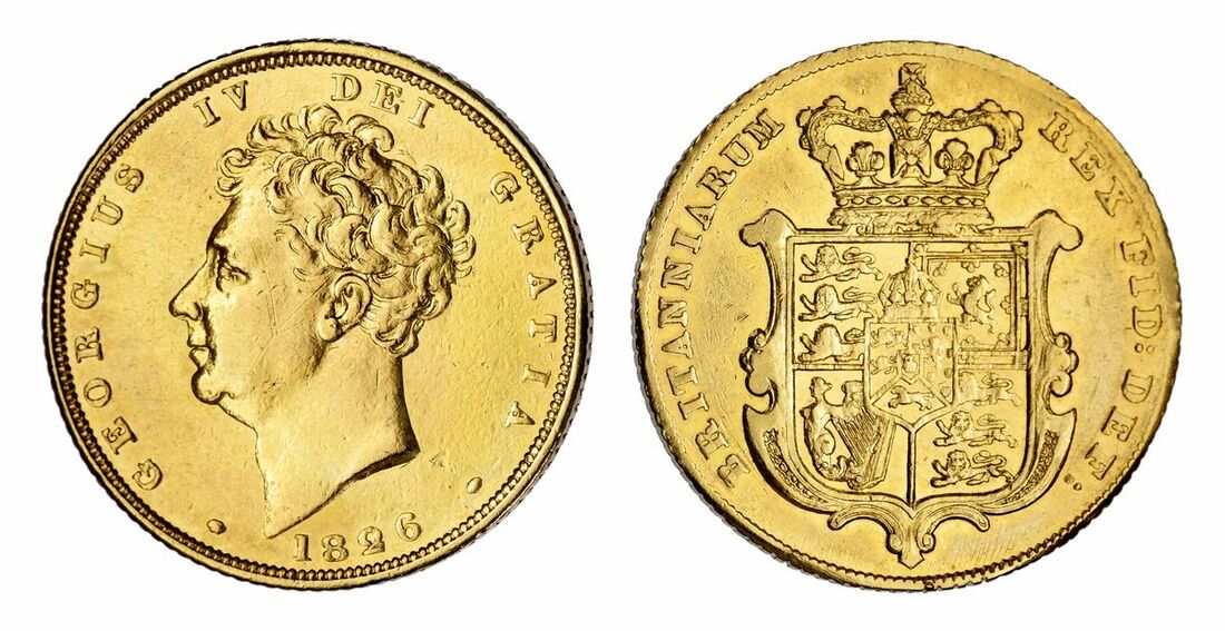 George IV (1820-1830), 'Chantrey's' Sovereign, 1826, bare head left, rev. crowned garnished shield, milled edge, 6h, 7.87g (Marsh 11; MCE 477; EGC 968; Spink 3801), heavily cleaned, pinmarked and scratched across the cheek, otherwise with a rich honey-red tone, very fine