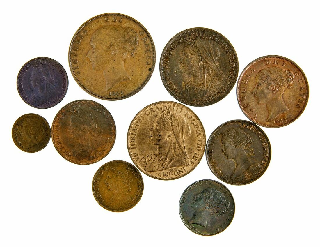 Victoria (1837-1901), 'Young Head' Penny, 1855 PT, young head left, W.W. incuse on truncation, rev. Britannia seated right, plain edge, 12h, 18.84g (Peck [BMC] 1509; Spink 3948), scatters of contact marks, otherwise with a pleasing lustre to light brown surfaces, nearing extremely fine; 'Young Head' Halfpenny, 1853, young head left, rev. Britannia seated right, plain edge, 12h, 9.60g (Peck [BMC] 1539; Spink 3949), some minor contact marks, otherwise with flashes of mint red around the devices, near extremely fine; another, 1862, plain edge, 12h, 5.74g (Spink 3956), about extremely fine; 'Young Head' Farthing, 1841, young head left, rev. Britannia seated right, plain edge, 12h, 4.65g (Peck [BMC] 1560; Spink 3950), couple of faint marks to otherwise dark yet toned and lustrous surfaces, about extremely fine; another, 1886, plain edge, 12h, 2.78g (Spink 3958), very fine; 'Old Head' Penny, 1897, plain edge, 12h, 9.66g (Spink 3961), uncirculated; another, 1901, plain edge, 12h, 9.29g (Spink 3961), good very fine; 'Old Head' Halfpenny, 1901, plain edge, 12h, 5.77g (Spink 3962), good extremely fine; 'Old Head' Farthing, 1901, plain edge, 12h, 2.84g (Spink 3964), extremely fine; Third-Farthing, 1885, plain edge, 12h (Spink 3960), extremely fine (10)