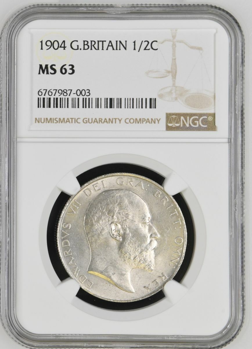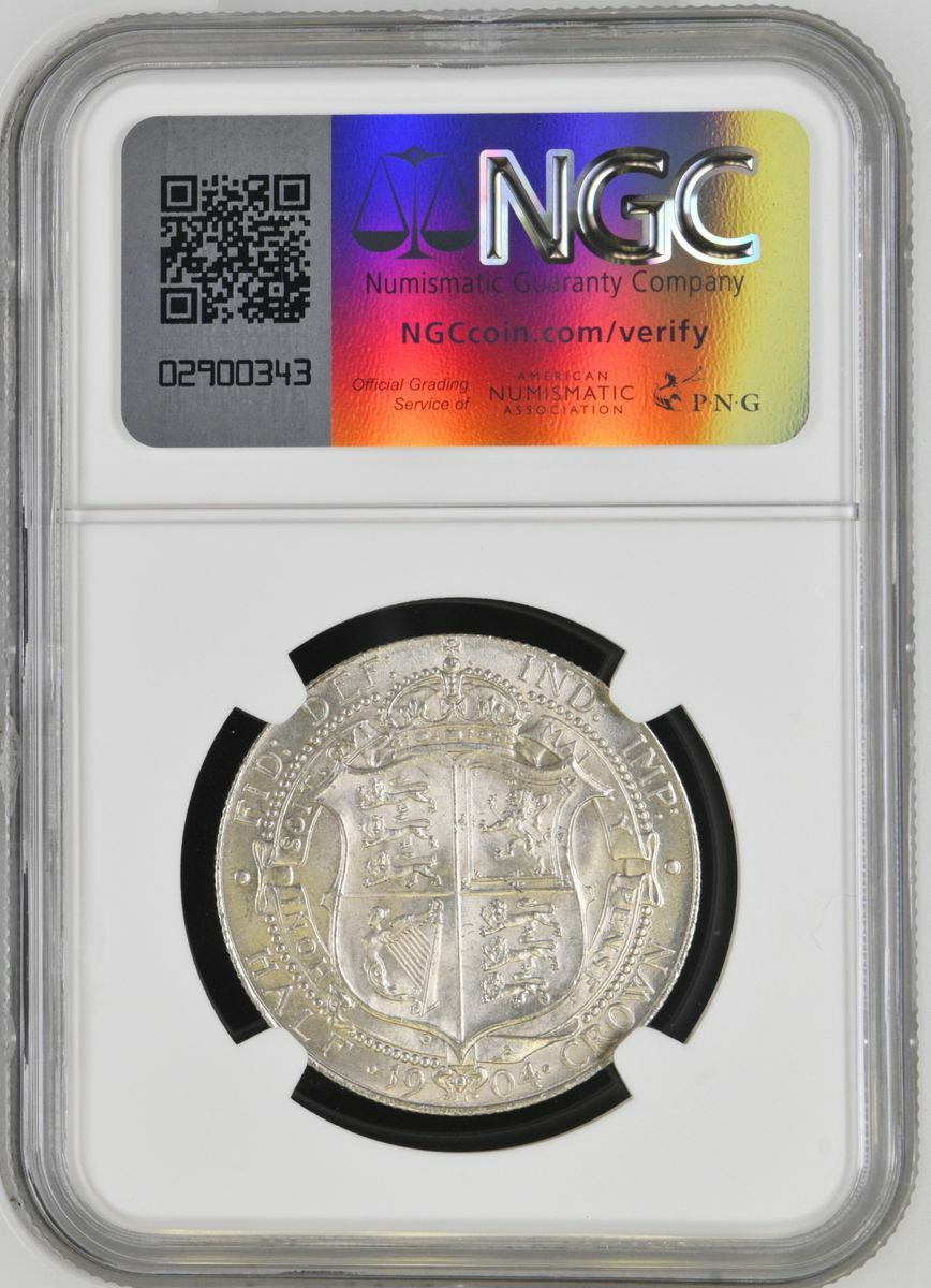 NGC MS63 | Edward VII (1901-1910), Halfcrown, 1904, bare head right, rev. crowned shield in Garter, edge milled, 14.18g, 12h (ESC 749; Bull 3570; S.3980), a scratch on beard and faint marks to otherwise sumptuously original fields, with full mint bloom, near uncirculated, a truly choice specimen, in NGC holder, graded MS63 (Cert. #6767987-003)
