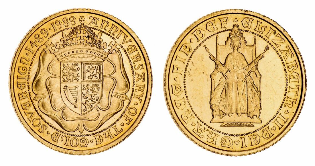(g) Elizabeth II (1952-2022), Brilliant Uncirculated Half-Sovereign, 1989, '500th Anniversary of the Sovereign', by Bernard Sindall, Elizabeth II seated in King Edward's chair, rev. shield of Our Royal Arms ensigned by Royal Crown, double rose behind, milled edge, 12h, 3.99g (Spink SB3), friction marking to otherwise brilliant fields, extremely fine