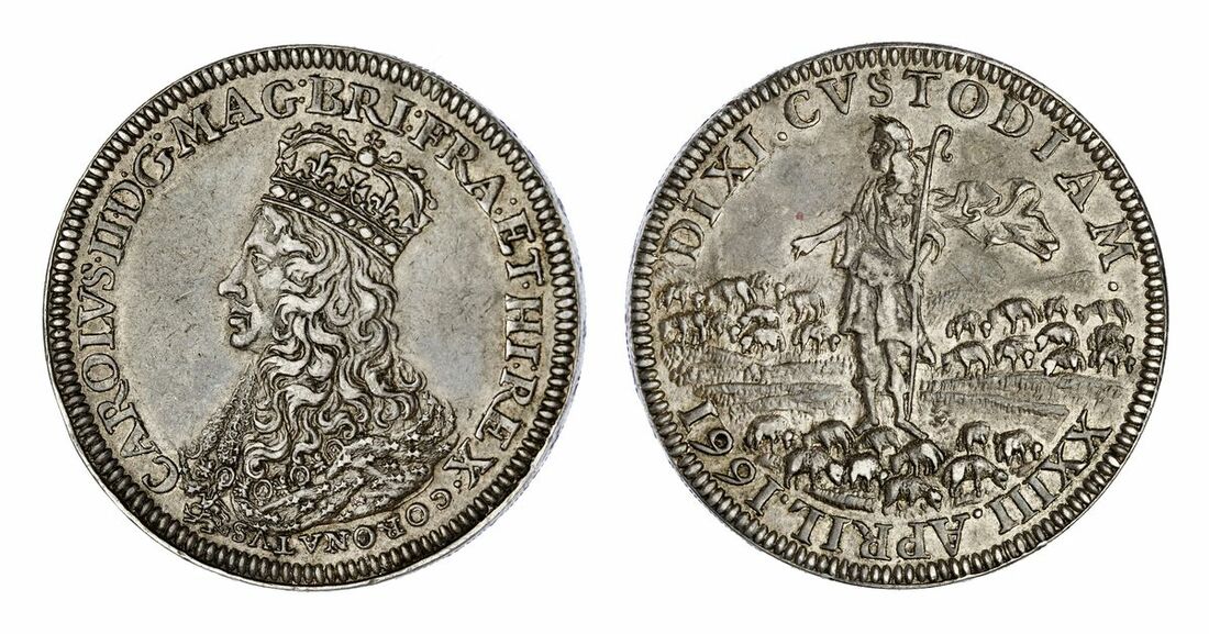 (x) Coronation of Charles II, AR Medal, 1661, [by T. Rawlins], CAROLVS . II . D : G : MAG : BRI : FRA : ET . HI : REX .