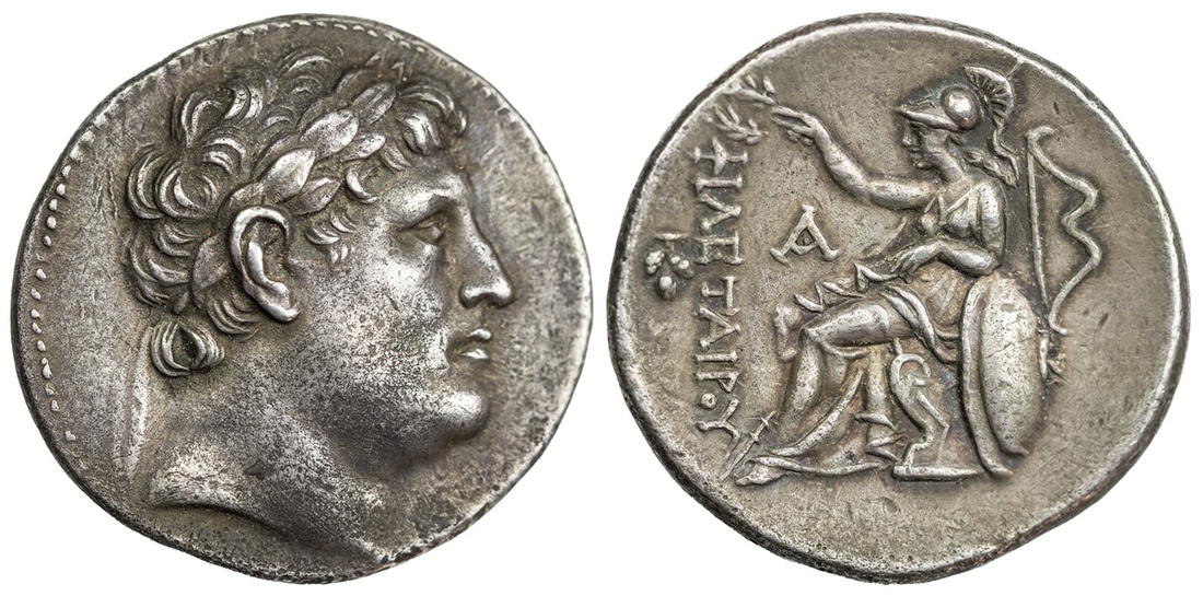 Kingdom of Pergamum, Attalos I (241-197 BC), AR Tetradrachm, laureate head of Philetairos right, rev. PHILETAIROY, Athena seated left, resting elbow on grounded shield, crowning name with wreath in her extended right hand, transverse spear in background, grape bunch to outer left field, bow to outer right, ATH monogram to inner left, 16.79g (SNG France 1616; SNG von Aulock 1358), toned, good very fine or better