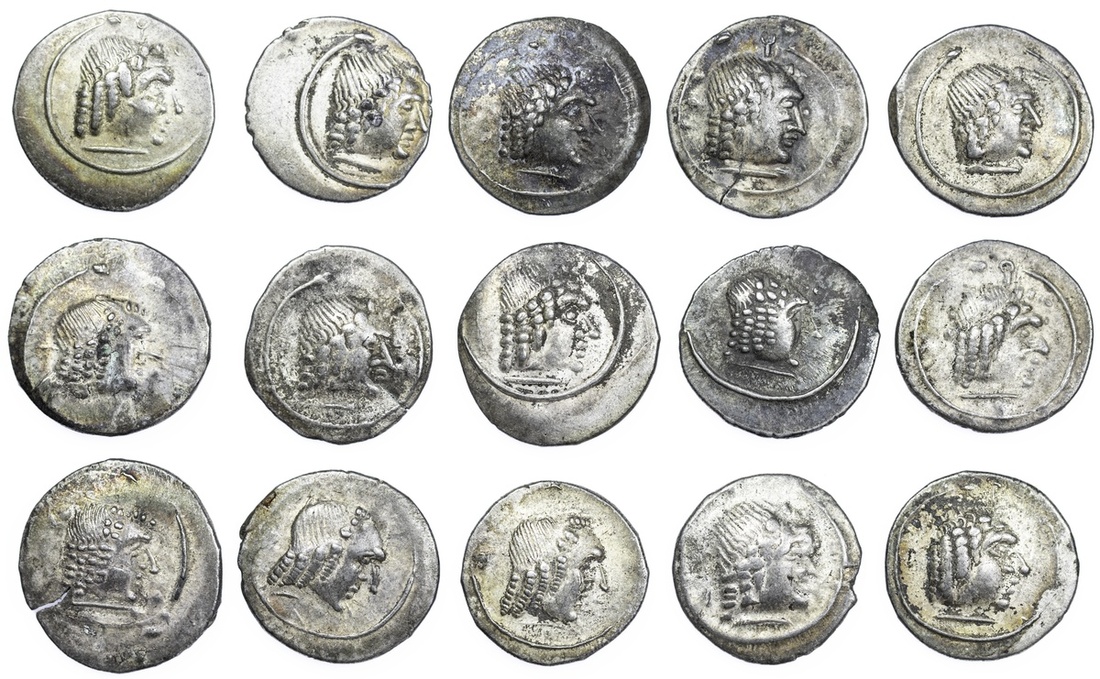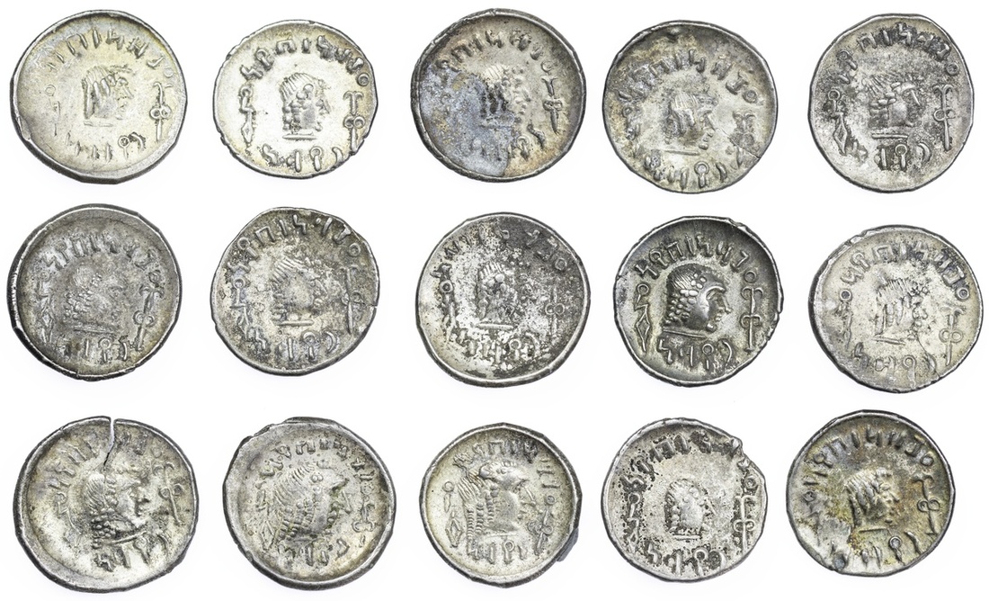 (x) Felix Arabia, Himyarites, temp. Amdan Bayyin, AR Quinarii, Raidan, struck c. AD 80-100, male head right, surrounded by torc, rev. small male head right surrounded by Sabaean inscription and monogram, ranging from good fine to extremely fine (15)