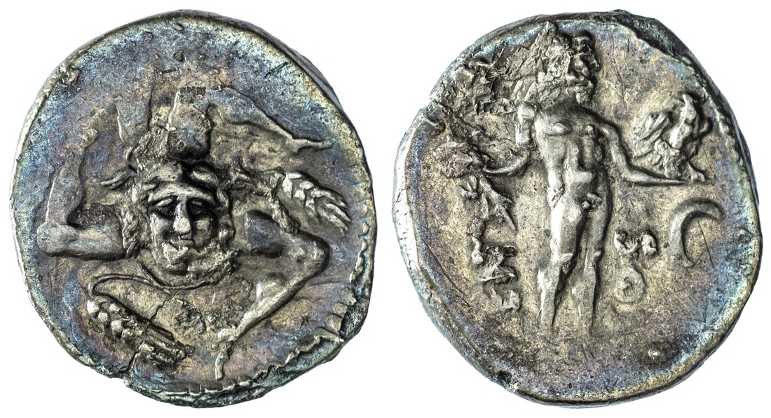 Roman Republic, L. Cornelius Lentulus and C. Claudius Marcellus, AR Denarius, Military Mint in the East, moving with Pompey, struck April-June 49 BC, triskeles, with winged facing head of Medusa at centre, ear of grain between each leg, rev. LENT MAR COS, Jupiter standing facing, head right, holding thunderbolt and eagle, harpa to right, 3.42g (Crawford 445/1a; CRI 4; Sydenham 1029a; RBW 1561), smoothed to edges, otherwise fine