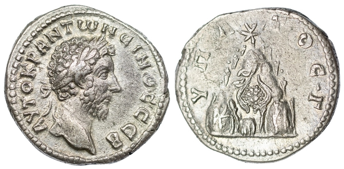 Roman Empire, Marcus Aurelius (AD 161-180), Provincial, Ceasarea, AR Didrachm, struck 161-166, AVTOKR ANTONEINOS SEV, laureate head right, rev. YLATOS V, Mount Argaeus, surmounted by a star, 6.79g (Metcalf 130b. RPC IV.3 Online temp. 7020. Sydenham 328), slight wear to legend, otherwise toned and impressive, good very fine