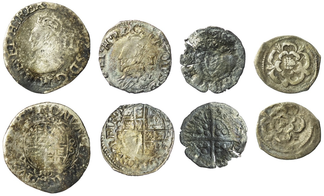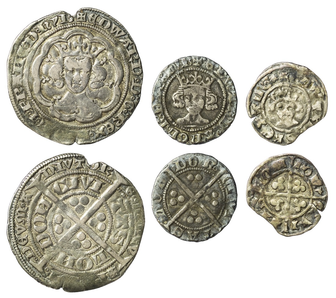 Hammered Silver (7) | Edward III (1327-1377), Fourth Coinage, Pre-Treaty Period, Groat, Series C, London, 1351-1352, crowned facing bust, rev. CIVITAS LONDON, long cross, three pellets in angles, 4.52g, 4h, m.m. cross 1 (North 1152; S.1565), a couple of small flan splits, better in parts, toned, good fine; and Penny, pellet before EDWARD, 1.10g, 2h (S.1625); and Halfpenny, 0.62g, 3h; and Farthing, 0.21g; also Charles I (1625-1649), Halfgroat, Penny and Halfpenny, worn, with some splits, but a pleasing selection nonetheless, all fine to good fine (7)
