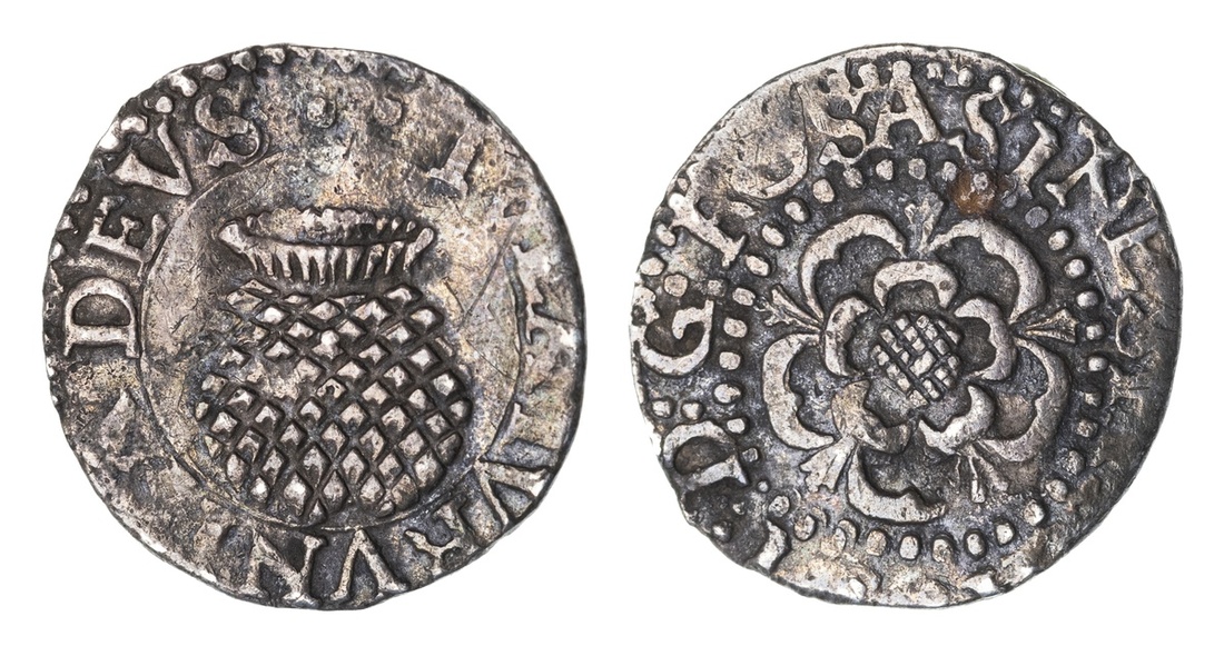 (x) James I (1603-1625), Second Coinage, Penny, 1605-1606, (m.m.) I .' D .' G .' ROSA SINE SPINA, rose, rev. (m.m.) TVEATVR • VNITA • DEVS, thistle, 0.54g, 11h (North 2106/1; S.2661), richly cabinet toned with an underlying lustre, good very fine