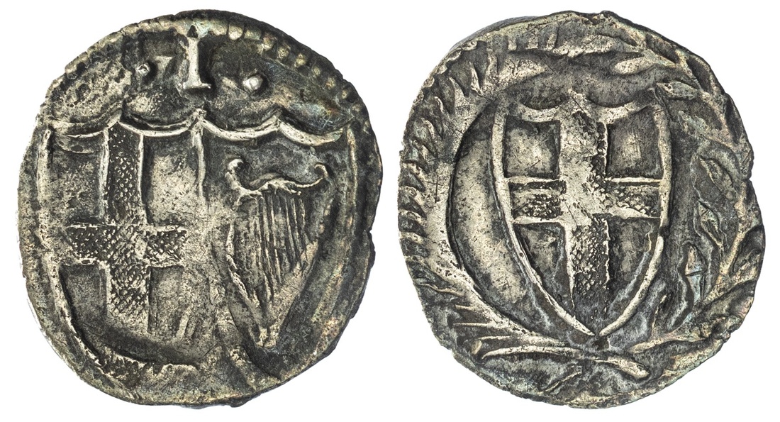 Commonwealth (1649-1660), Penny, undated, shield of England within palm and laurel wreath, rev. conjoined shields of England and Ireland, value above, 0.37g, 6h (ESC 2263; Bull 228; North 2730; S.3222), toned and a pleasing strike, good very fine