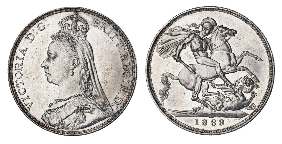 Victoria (1837-1901), 'Jubilee' Crown, 1889, crowned bust left, rev. St George and Dragon, milled edge, 28.27g, 12h (ESC 299; Bull 2589; S.3921), cabinet friction to otherwise near brilliant fields, with a full mint bloom, much as struck