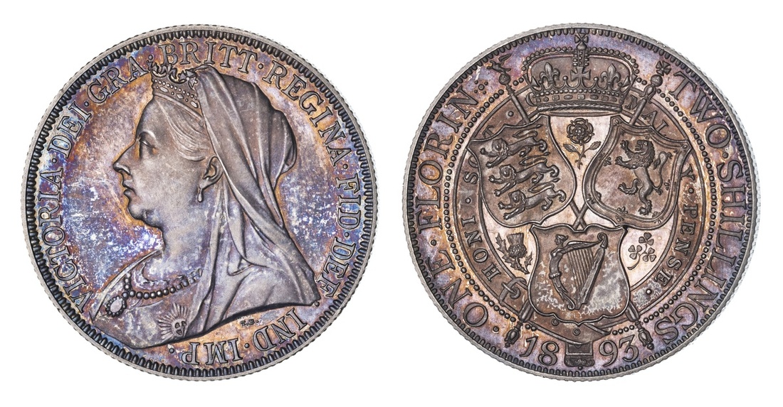 Victoria (1837-1901), 'Old Head' Proof Florin, 1893, veiled bust left, rev. three crowned shields, milled edge, 11.43g, 12h (Bull 2963; ESC 877; S.3939), light marks to obverse fields, otherwise brilliant, extremely fine