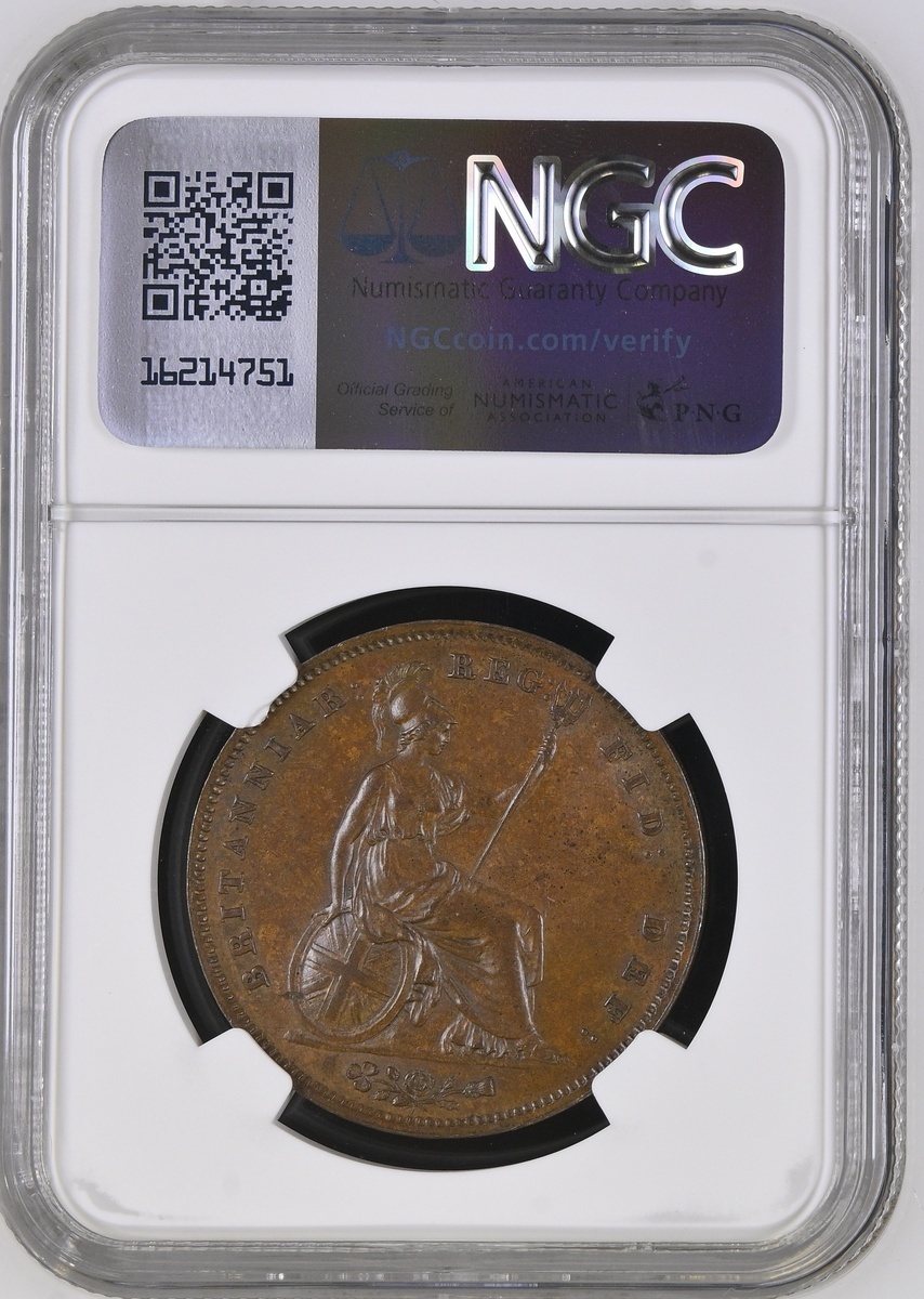 NGC MS62 BN | Victoria (1837-1901), Penny, 1855 OT, young filleted head left,
