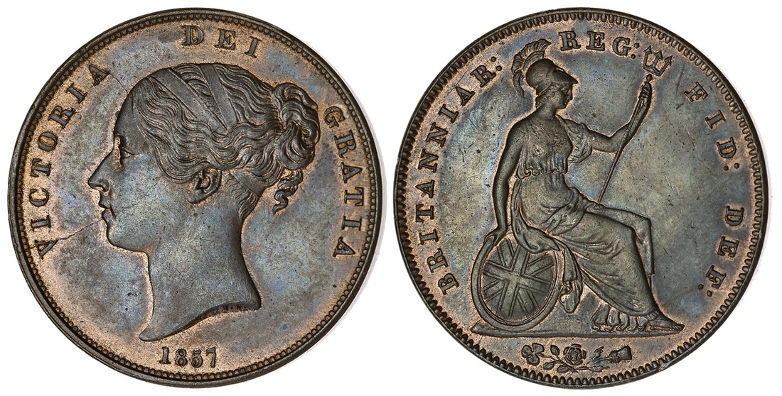 NGC MS64 BN | Victoria (1837-1901), Penny, 1857 PT small date, young filleted head left,