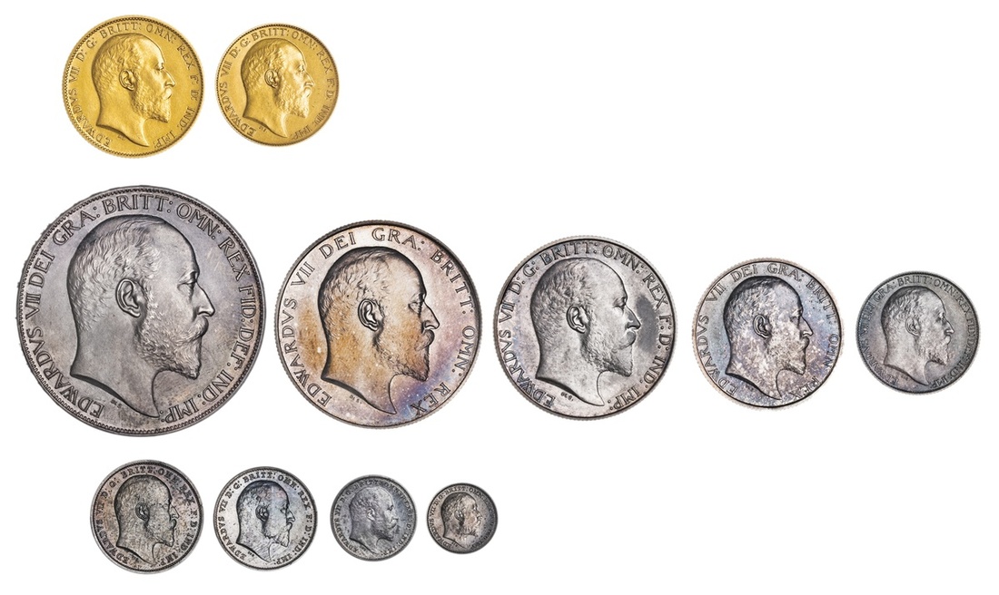 (g) Edward VII (1901-1910), Coronation 'Specimen' Matte Proof 'Short Set', 1902 (11), Matte Proof Sovereign to Half-Sovereign, Crown to Sixpence and Maundy Set (S.PS10), Sovereign lightly marked to the rim, otherwise the gold pleasingly matte, the silver with a pleasing blue tone to matte surfaces, much as struck, in original Royal Mint case of issue (11)