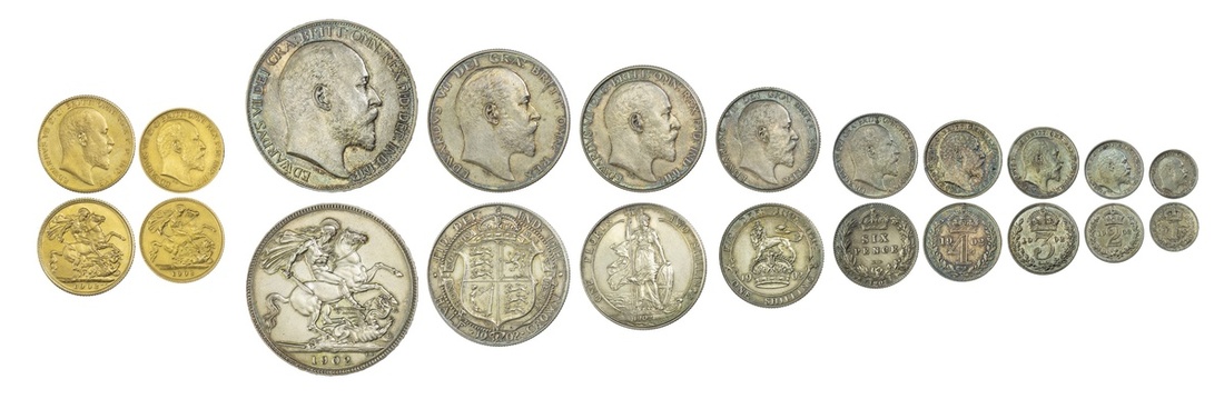 Edward VII (1901-1910), Coronation 'Specimen' Matte Proof 'Short Set', 1902 (11), Matte Proof Sovereign and Half-Sovereign, Crown to Sixpence and Maundy Penny (S.PS10), previously wiped and with resulting hairlines, nonetheless the silver mostly toned with hues of blue to the peripheries, extremely fine, in original Royal Mint case of issue (11)