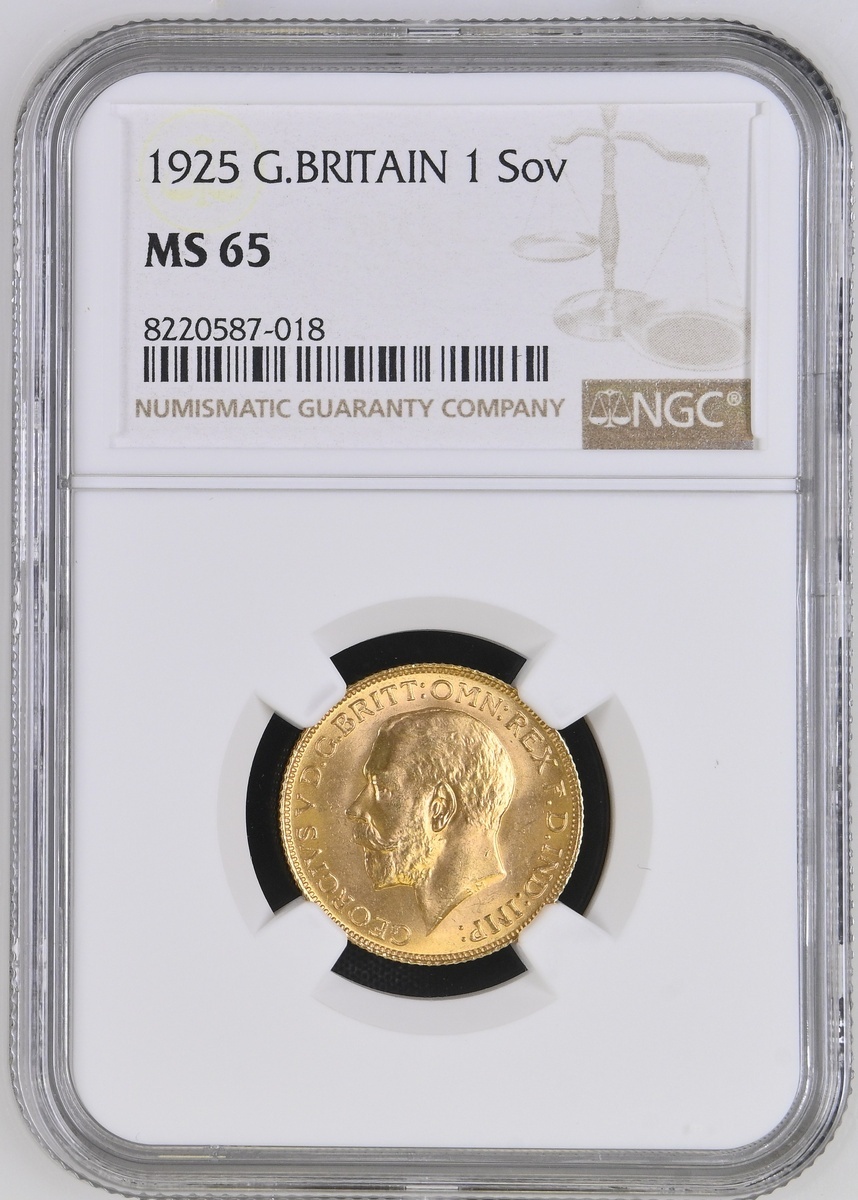 (g) NGC MS65 | George V (1910-1936), Sovereign, 1925, first head, edge milled, 7.98g, 12h (Marsh 220; S.3996), gloriously choice, FDC, in NGC holder, graded MS65 (Cert. #8220587-018)