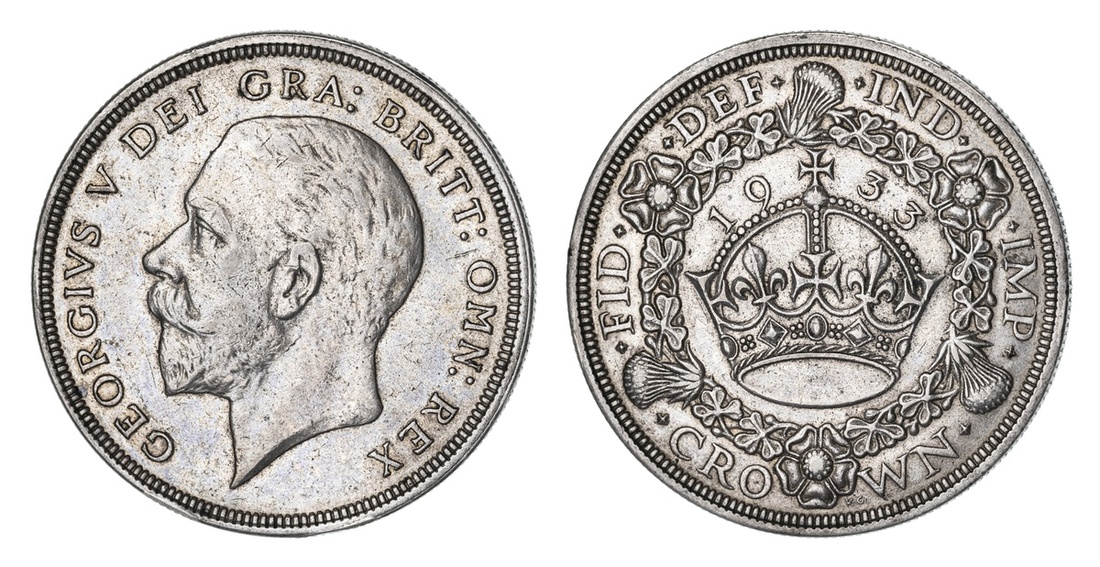George V (1910-1936), 'Wreath' Crown, 1933, bare head left, rev. crown within wreath, milled edge, 28.24g, 12h, (ESC 373; Bull 3644; S.4036), bagmarking and softness to tops of devices, nonetheless toned, very fine, one of only 7,132 struck