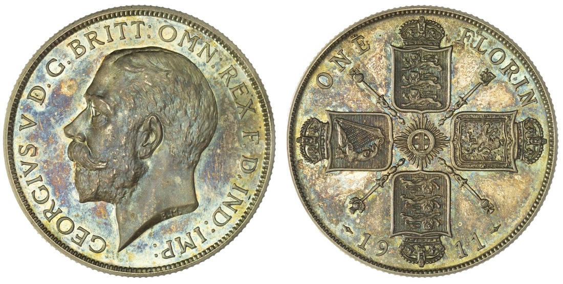 George V (1910-1935), Coronation Proof Florin, 1911, bare head left, rev. crowned cruciform shields, sceptres in angles, edge milled, 11.23g, 12h (ESC 930; Bull 3756; S.4012), spot before forehead, with a rich cabinet tone to flashy-brilliant fields, much as struck, in NGC holder (Cert. #8220595-002)