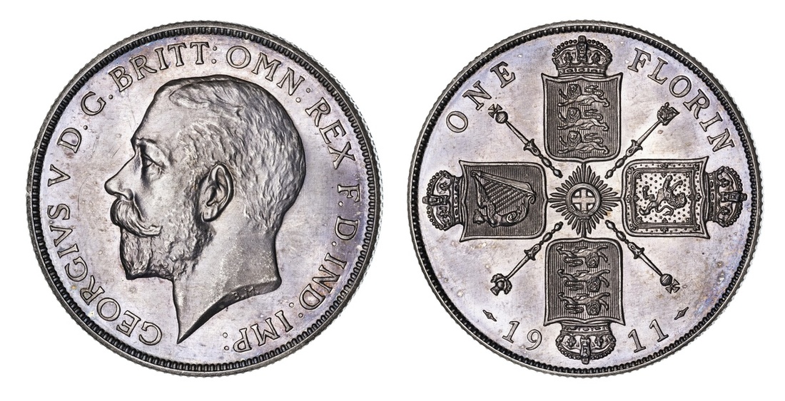 George V (1910-1936), Coronation Proof Florin, 1911, bare head left, rev. crowned cruciform shields, sceptres in angles, milled edge, 11.25g, 12h (ESC 930; Bull 3756; S.4012), much brilliance beneath cabinet toned fields, as struck