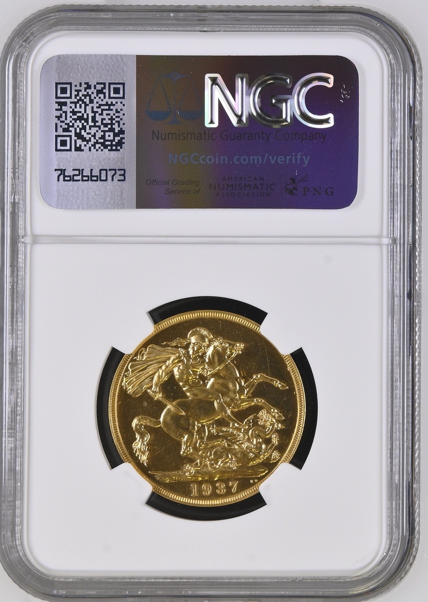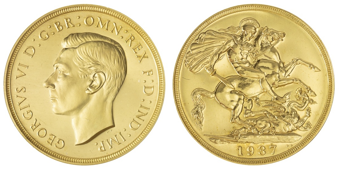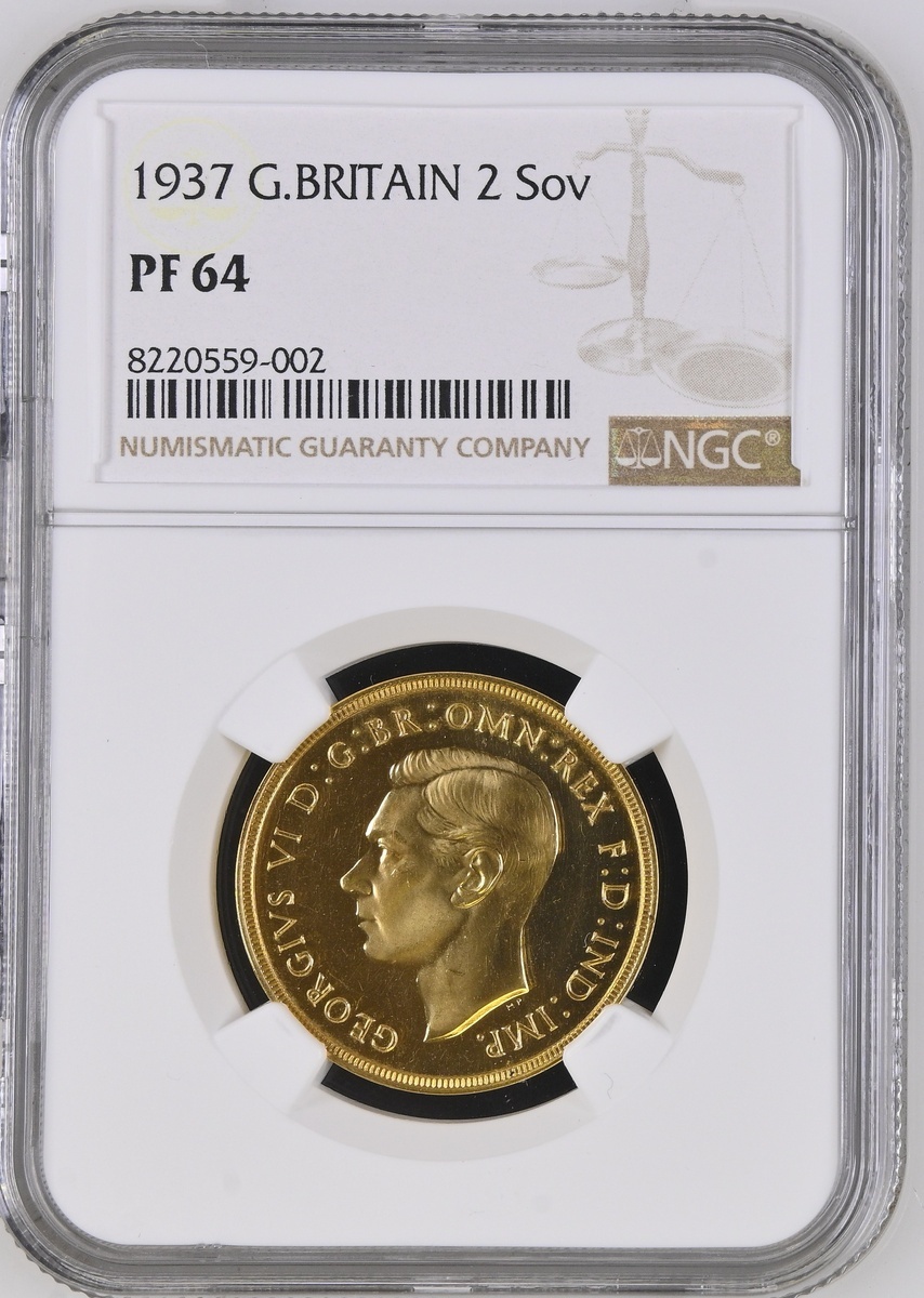 (g) NGC PF64 | George VI (1936-1952), Coronation 'Specimen' Proof Two-Pounds, 1937, bare head left, rev. St. George and Dragon, edge plain, 16.00g, 12h (W&R 437; Marsh T46; EGC 1455; S.4075), light cabinet friction in otherwise brilliant fields, good extremely fine and much as struck, in NGC holder, graded PF64 (Cert. #8220559-002)