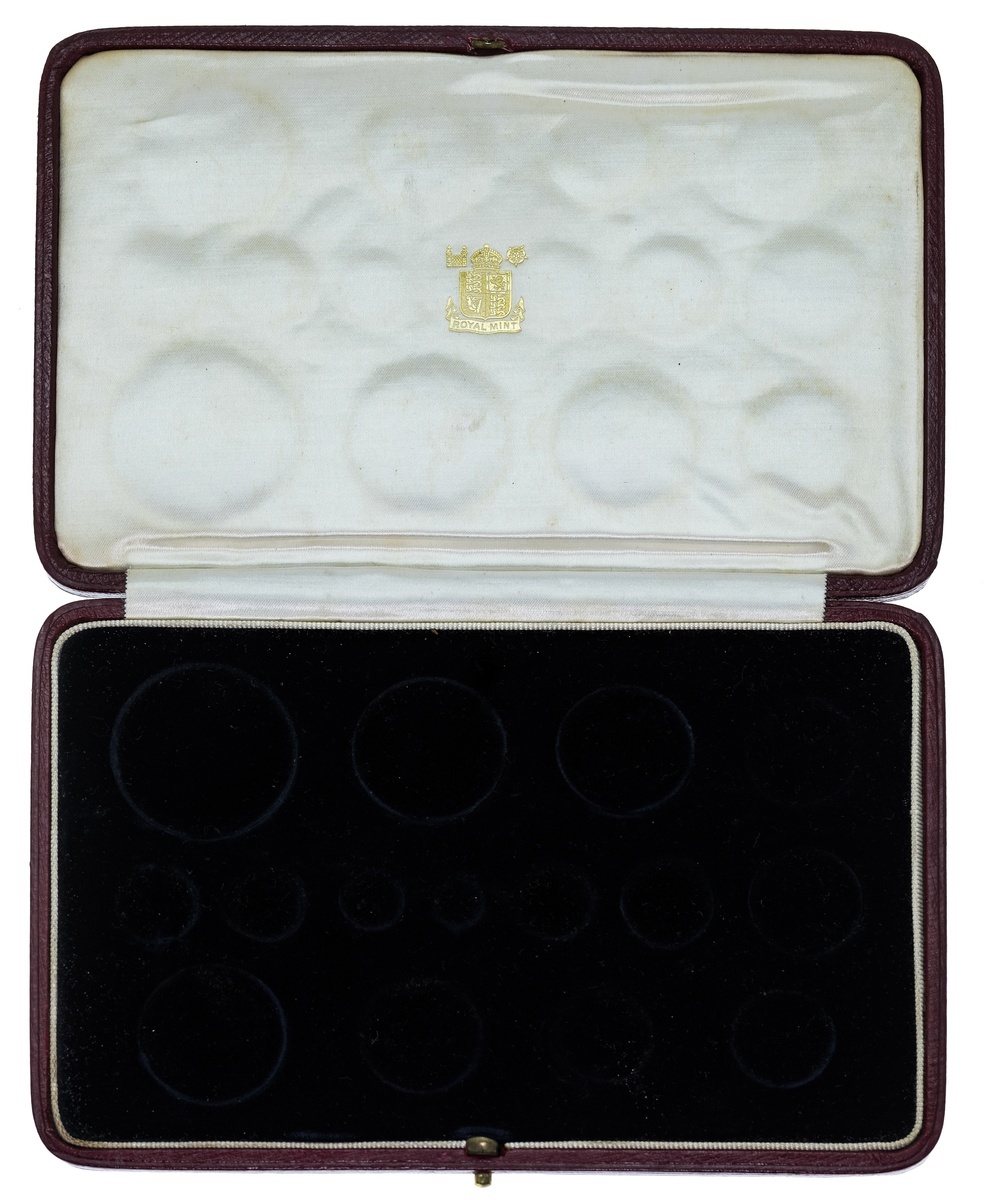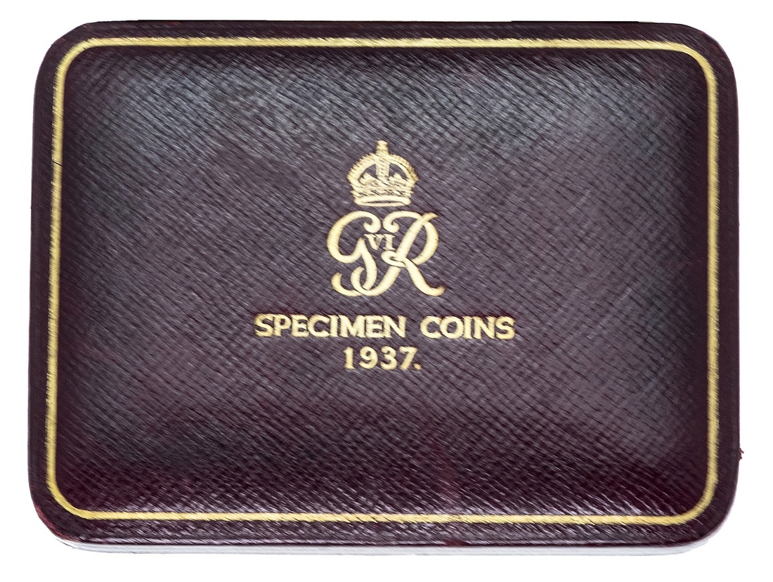 George VI (1936-1952), 'Official' Royal Mint Coronation Proof Set Case, Crown to Farthing (15), 1937, case in full working order, extremely fine; and, 'Official' Royal Mint Coronation Proof Set Case, Five-Pounds to Half-Sovereign (4), 1937, in full working order, extremely fine [2 cases]