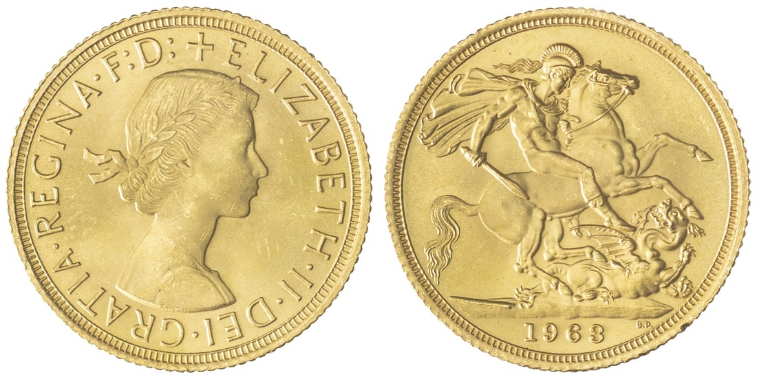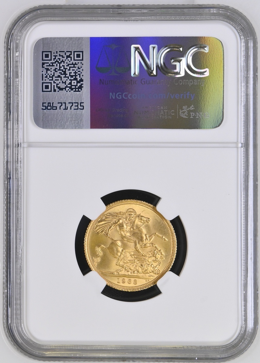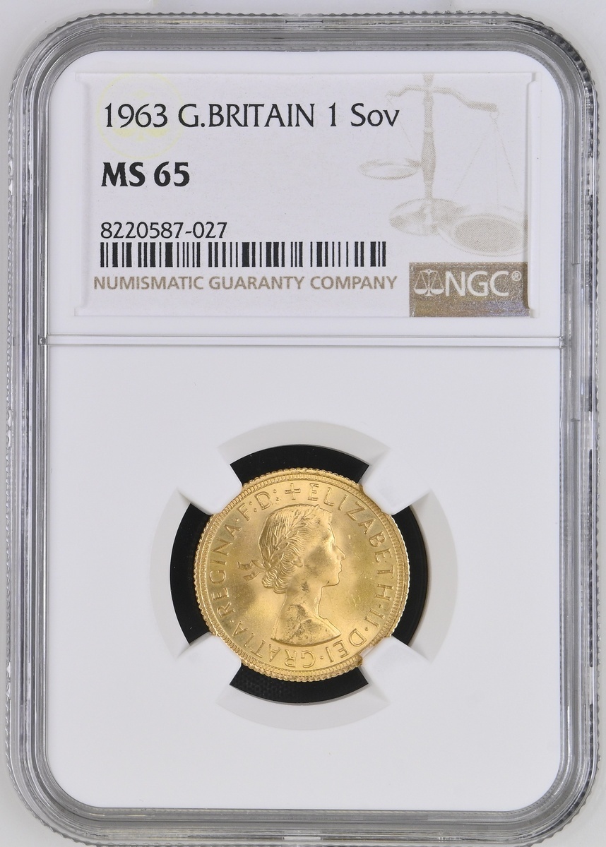 (g) NGC MS65 | Elizabeth II (1952-2022), Sovereign, 1963, first laureate head, edge broad milled, 7.99g, 12h (S.4125), wondrously choice, FDC, in NGC holder, graded MS65 (Cert. #8220587-027)