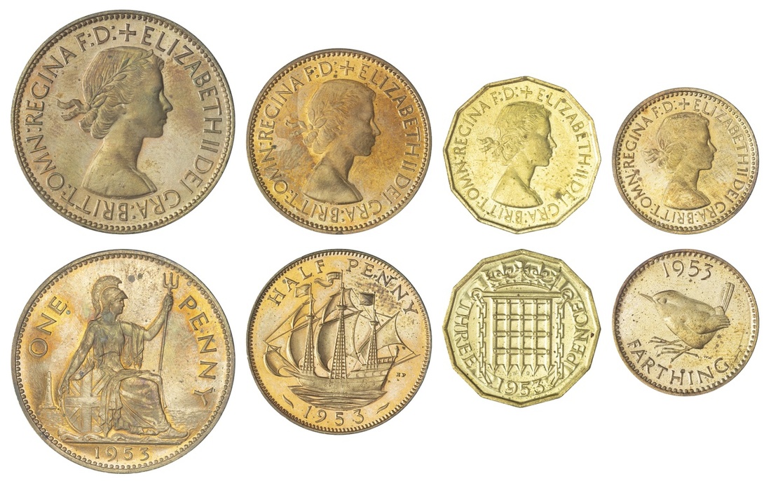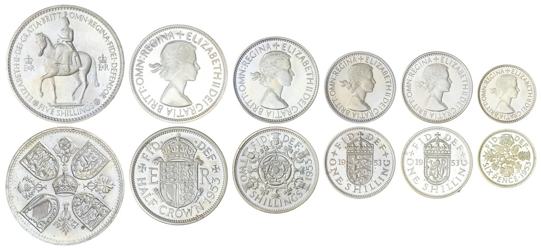 Elizabeth II (1952-2022), Coronation Proof Set, 1953, Crown to Farthing (S.PS19), evidence of previous handling, otherwise brilliant and about as struck, in Royal Mint case of issue (10); and, Florin, 1954, laureate head right, rev. double rose, edge milled, 11.27g, 12h (ESC 968H; Bull 4397; S.4146), brilliant, much as struck (11)