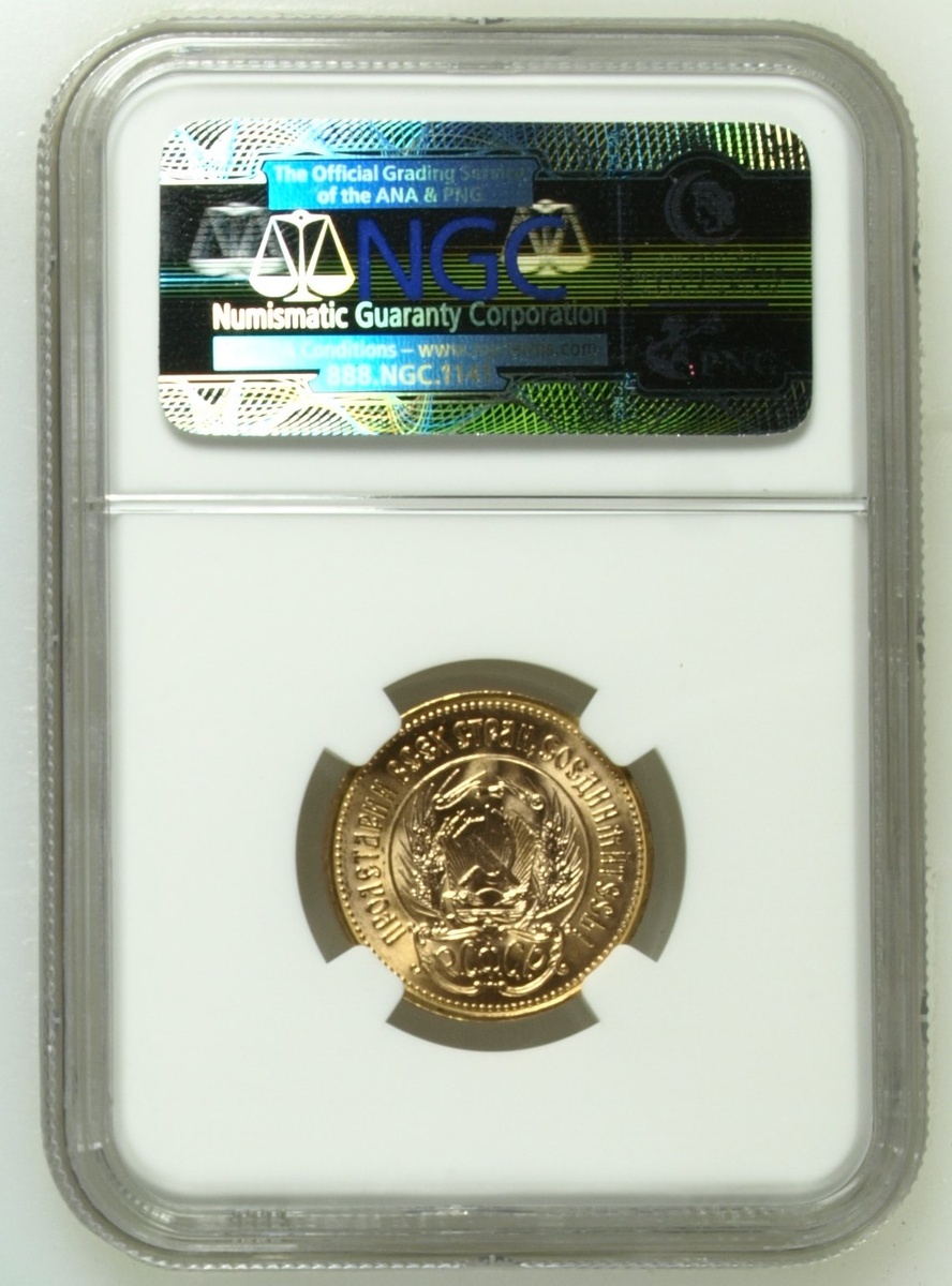 NGC MS66 | Russia (USSR), Gold 10-Roubles [Chervonetz], 1976, Leningrad, incuse lettered edge, 12h (Fb, 181a; KM Y85), with a full and pleasing mint bloom, much as struck, in NGC holder, graded MS66 (Cert. #3980065-026)
