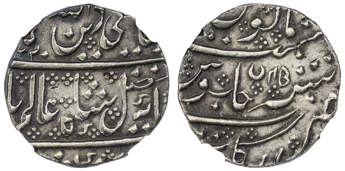NGC AU | French India, in the name of Shah 'Alam II Arcot Rupee, 11.40g, Arkat, AH(12)22 / 45, crescent by regnal year (KM 15), cleaned very fine, in NGC holder, graded NGC AU Details ~ Cleaned (Cert. #6946463-005)