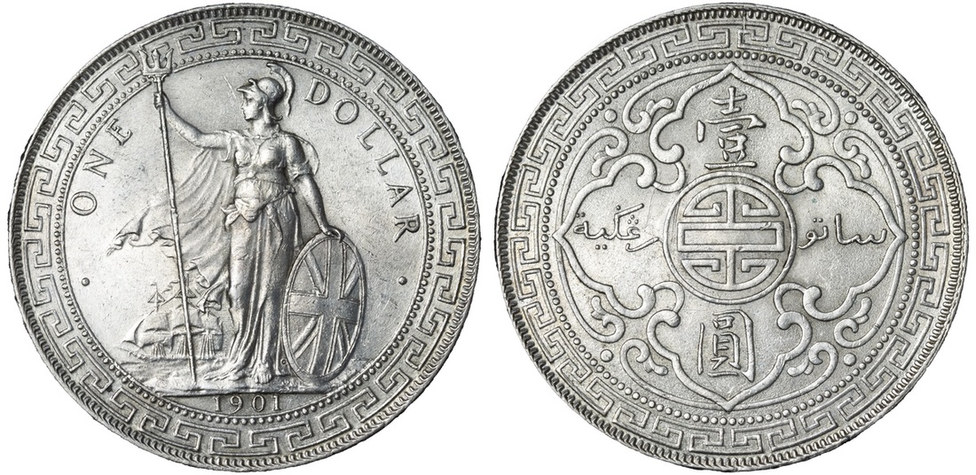 British Overseas Territories, Straits Settlements and Hong Kong (1895-1935), British Trade Dollar, 1901 C, Calcutta Mint, by George William de Saulles, Britannia standing left, holding trident, cape billowing behind, date in exergue, rev. Chinese characters and Jawi script in ornamental flower, edge milled, 12h (Mars BTD1; Prid. 12; KM T5), lustrous and choice, a pleasing extremely fine and much as issued