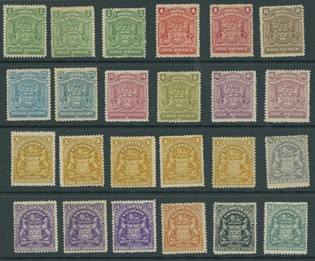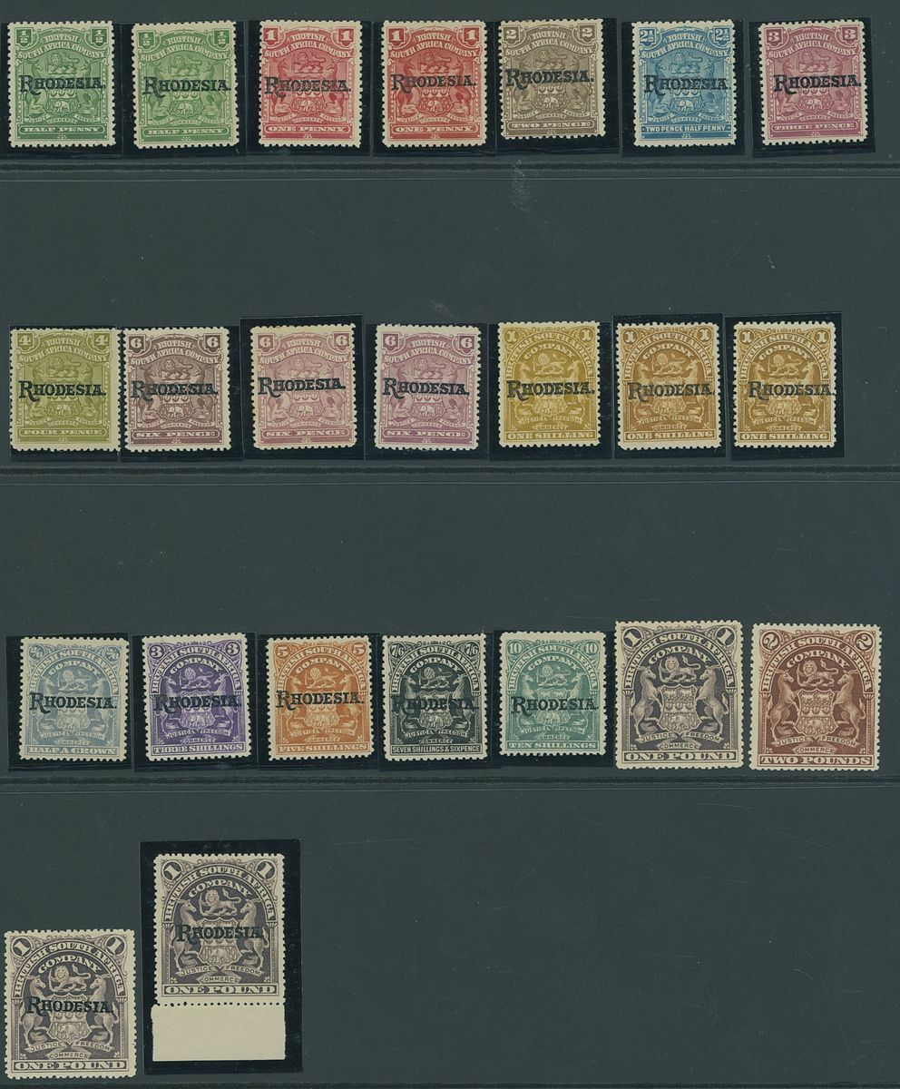 1898-1911 mint group on Hagner pages including 1898-1908 set to £2 with some duplication including 1/- (5) and 3/- (3), 1909-12 Rhodesia overprint set to £1 with some duplication including £1 (2) and 1909-11 surcharges to 10d. on 3/-; generally fine mint. S.G. cat. value £1,700+